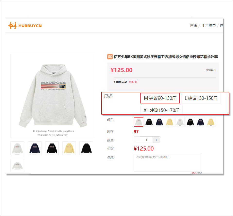 • 部分商品受邮寄限制,不是所有物流线路都能寄送,HubbuyCN为您筛选出可用的配送方式,您从中选择即可
