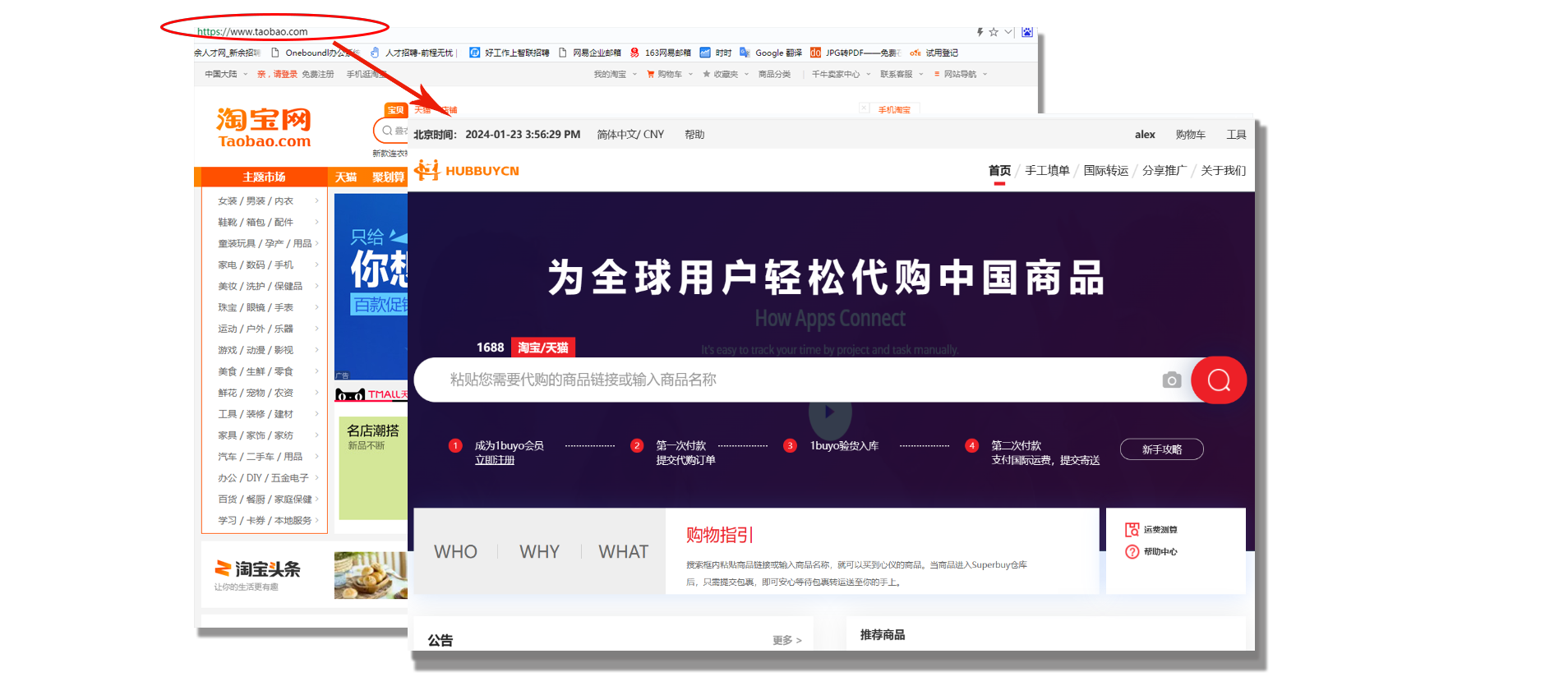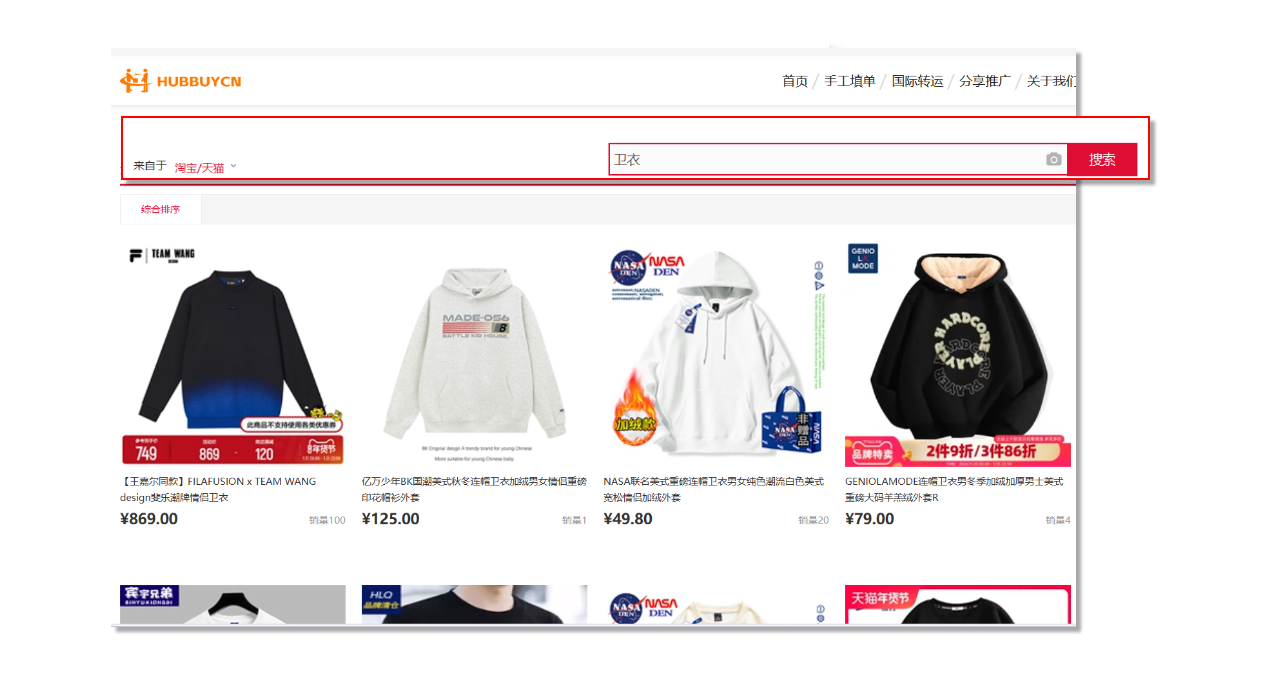 或者在HubbuyCN平台搜索框中输入想要的商品名称,从推荐的淘宝、天猫等检索后挑选商品