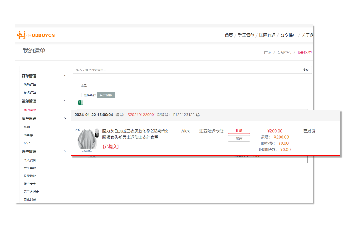 可以在“会员中心”-“我的运单”中查询国际物流轨迹信息